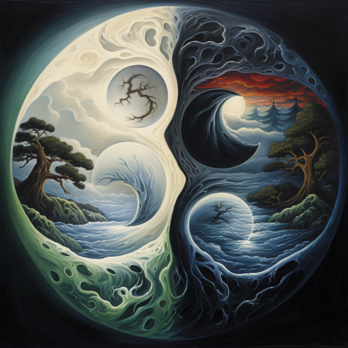 Yin and Yang is a fundamental concept deeply ingrained in ancient Chinese philosophy and cosmology. This concept reflects the duality and interconnectedness of all things in the universe. It is a fundamental principle that underpins the understanding of various aspects of life, nature, and the world. The concept of Yin and Yang is often depicted as a circle divided into two halves, with one containing the white Yang and the other the black Yin, each containing a small dot of the opposite color, symbolizing the inherent interconnection and interdependence between these two opposing forces.